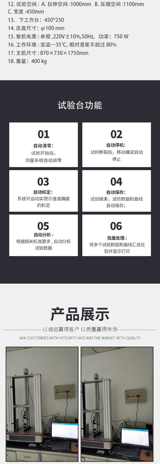 10KN緩沖塊耐久疲勞試驗機功能特點