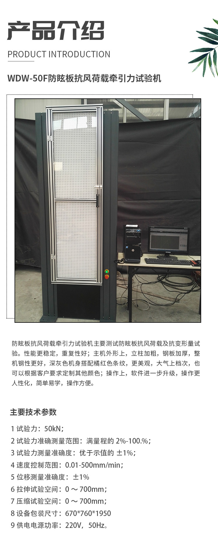 當前位置:首頁 > 產(chǎn)品中心 > 防眩板抗風荷載試驗機 ? 防眩板整體力學性能牽引力試驗機