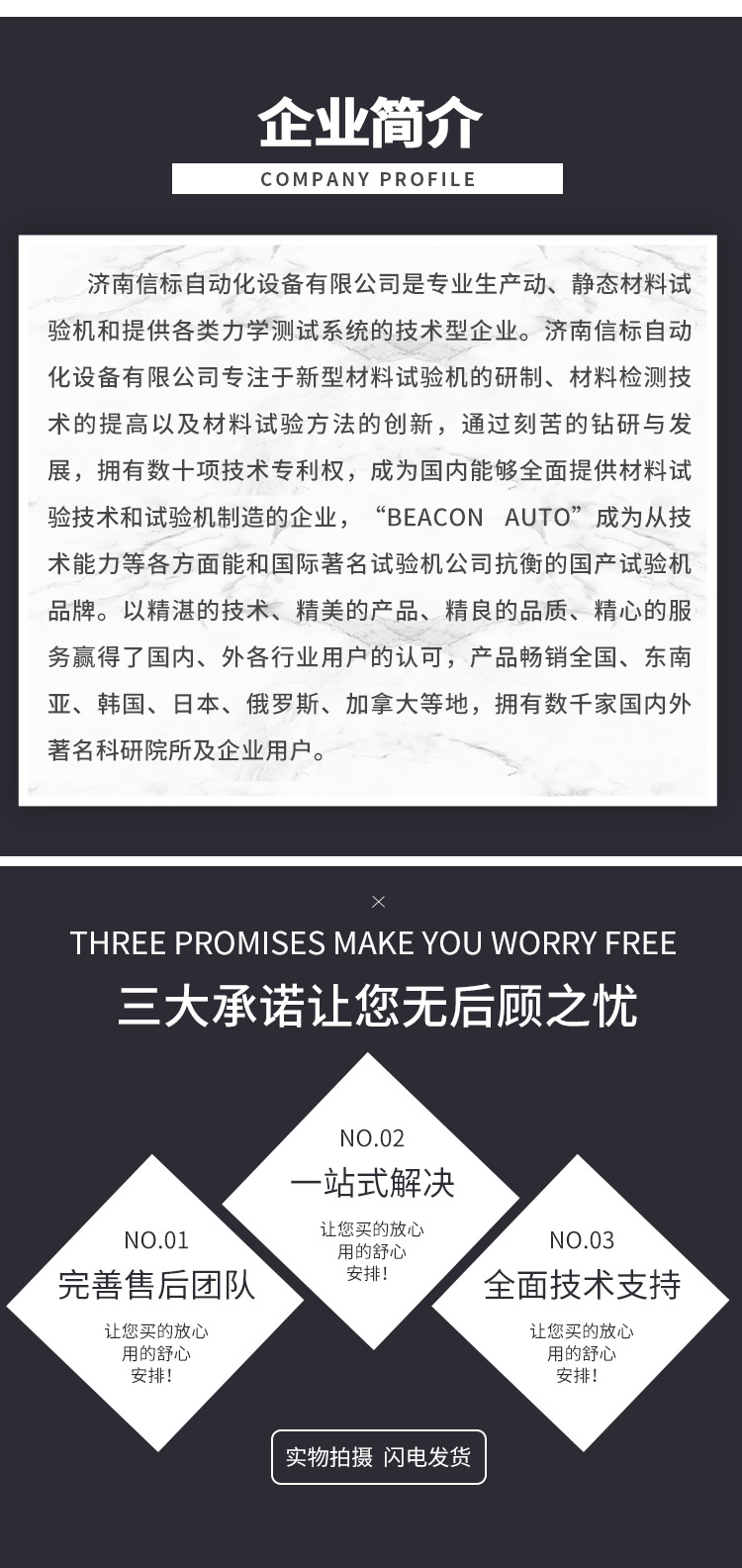 濟南信標自動化設備有限公司主要生產(chǎn):動靜態(tài)萬能疲勞試驗機,接骨板彎曲試驗機,縫合線拉伸疲勞試驗機,髖膝關(guān)節(jié)磨損試驗機,電子萬能試驗機、液壓萬能試驗機、巖石三軸、四軸,電液拉力試驗機,材料試驗機,高低溫蠕變,高低頻疲勞,拉伸、扭轉(zhuǎn)、杯突等二十多個系列兩千多個的品種。