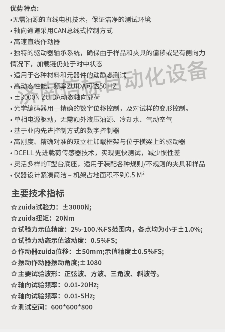 濟南信標自動化設備有限公司主要生產:動靜態萬能疲勞試驗機,接骨板彎曲試驗機,縫合線拉伸疲勞試驗機,髖膝關節磨損試驗機,電子萬能試驗機、液壓萬能試驗機、巖石三軸、四軸,電液拉力試驗機,材料試驗機,高低溫蠕變,高低頻疲勞,拉伸、扭轉、杯突等二十多個系列兩千多個的品種。