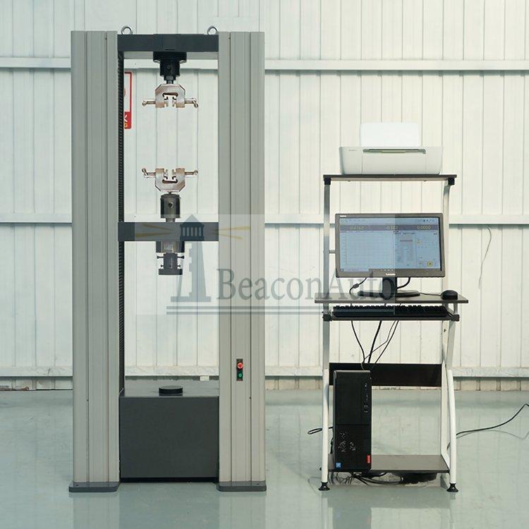 道橋用防水涂料接縫疲勞試驗機 產品簡介: 道橋用防水涂料接縫疲勞試驗機計算機系統通過全數字控制器,經調速系統控制伺服電機轉動,經減速系統減速后通過精密滾珠絲杠副帶動移動橫梁上升、下降,完成試樣的拉伸、壓縮、彎曲、剪切等多種力學性能試驗. 道橋用防水涂料接縫疲勞試驗機主要技術指標: 1. zui大試驗力:300kN 2. 試驗力測量范圍:0.4%--100.% 3. 試驗力示值精度:優于示值±1% 4. 試驗力分辨力:1/300000(全程不分檔或等效6檔) 5. 橫梁位移測量精度:分辨率高于0.0025mm 6. 變形測量精度:±0.5%(在0.2—10mm范圍內) 7. 試驗速度范圍:0.01—300mm/min,無級調速 8. 速度控制精度:±1%(0.01~10mm/min); 9. 恒力、恒變形、恒位移控制范圍: 0.2%-100%FS 10.恒力、恒變形、恒位移控制精度: 設定值<10%FS時,設定值的±1.0%以內 設定值≥10%FS時,設定值的±0.1%以內 11. 變形速率控制精度: 速率<0.05%FS時為±2.0%設定值內 速率≥0.05%FS時為±0.5%設定值內 12. 試驗空間: A.拉伸空間:600mm B.壓縮空間:700mm C有效寬度:600mm 13.夾具形式:楔形夾具體 平鉗口0-20mm 圓鉗口?9-?26mm 14. 壓盤尺寸:φ100 mm 18. 整機電源:三相,380V±10%,50Hz,功率:3kW 19. 工作環境:室溫—35℃,相對濕度不超過80% 20. 主機尺寸:1130×650×2650mm 21. 重量:1800 kg