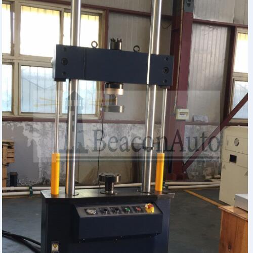 金屬纜線和纜索疲勞性能試驗機 產品特點: 1.主機:(輔助實驗夾具以客戶要求為準) 金屬纜線和纜索疲勞性能試驗機主機為雙立柱框架式結構, 伺服直線作動器下置于主機框架上部。夾頭分別安裝在橫梁和作動器活塞桿頂端。主機橫梁調整采用電動絲杠升降,傳動單元隱藏在橫梁內部,外觀整潔,主機下部工作臺為分體式,不需要刻意拆掉,整機防止在客戶Z定的臺面上。手動夾緊、彈性松開式結構,保證試驗過程中橫梁穩固可靠,同時保證在非試驗狀態時橫梁保持鎖止不動。立柱外表面采用電鍍硬鉻處理,可有效增加立柱抗磨損能力,提高防腐蝕能力,同時增加主機外形的美觀程度。 試驗機主機具有結構緊湊、橫梁升降自如、機架剛度高、試件夾持可靠、對中性好、裝夾方便等特點,并可配備各種夾具和環境試驗裝置以擴展試驗功能。